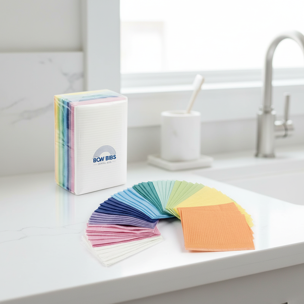 10 Vibrant Colors – Waterproof & Absorbent Disposable Dental Bibs